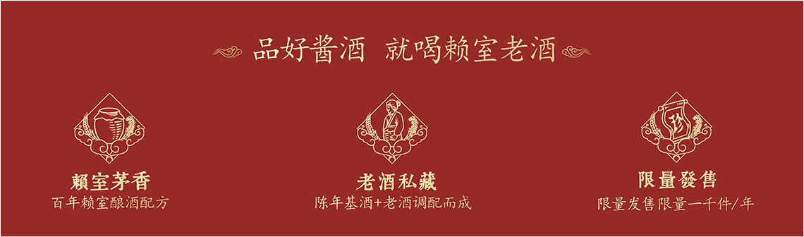 赖室老酒进行组合,形成一个印章,代表了赖室老酒不变承诺。